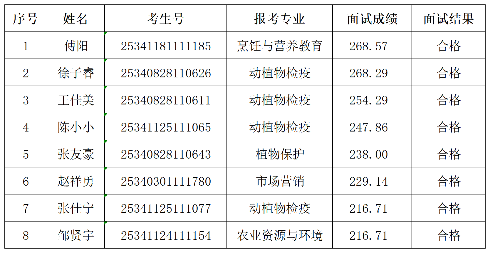 经本人申请、资格初审、资格复审和专家组面试,现将傅阳等8名考生面试结果予以公示。