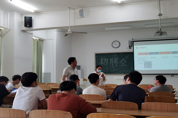应校党委书记蒋德勤,校党委委员、副院长李升和在访企拓岗促就业活动中的邀请,5月20日下午,长电科技(滁州)有限公司、蚌埠国钛纳米有限公司进校举办专场宣讲会,提供优质就业岗位200余个。电气与电子工程学院、化学与材料工程学院、管理学院等六十多名毕业生聆听宣讲,并现场与公司代表就薪资待遇、职业发展、政策补贴等进行交流和投递简历,数十名毕业生表达了就业意向。