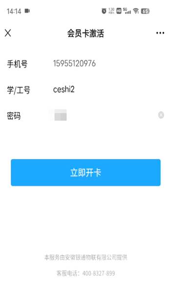 备注:若系统提示手机号与姓名不匹配,请输入学号密码(默认身份证后六位)进行验证,然后领取校园卡包。